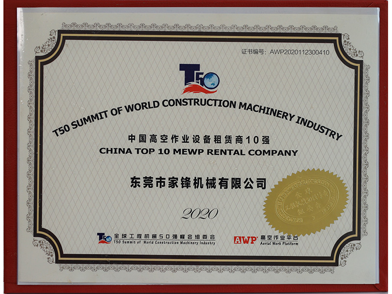 東莞市家鋒機械有限公司成立于2016年,是專業(yè)的高空作業(yè)平臺租賃、銷售服務(wù)商,擁有徐工、中聯(lián)、吉尼、捷爾杰等國內(nèi)外知名品牌的高空作業(yè)設(shè)備八千多臺,連續(xù)四屆榮膺“中國高空作業(yè)設(shè)備租賃商十強企業(yè)”及“中國高空作業(yè)平臺租賃業(yè)十大品牌”,并于2021年首次榮膺“中國工程機械租賃商十強”,是立足華南、輻射全國、規(guī)模大、服務(wù)優(yōu),極具競爭力和影響力的企業(yè)。短短幾年,已相繼與世界機械巨頭徐工集團、中聯(lián)重科達成戰(zhàn)略合作。